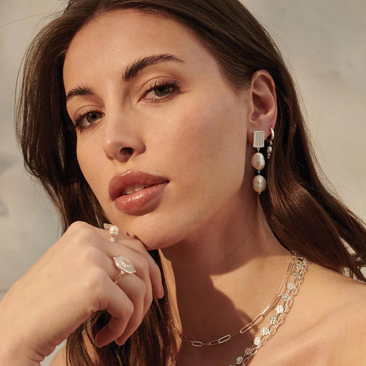 Aphrodite Goddess Medium Pearl Earrings in Sterling Silver