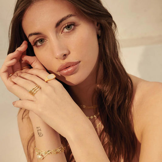 Aphrodite Goddess Mother Of Pearl Ring 18KT Yellow Gold Plate