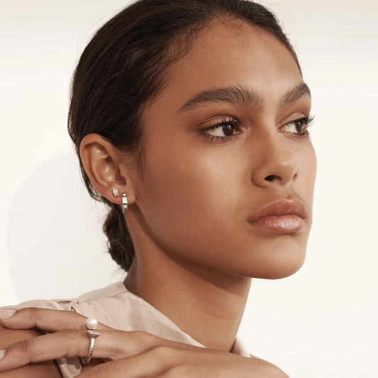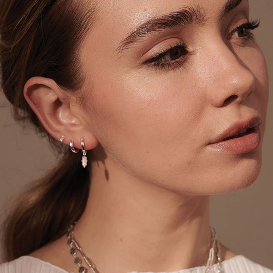 Octagonal Huggies - White Topaz in Sterling Silver