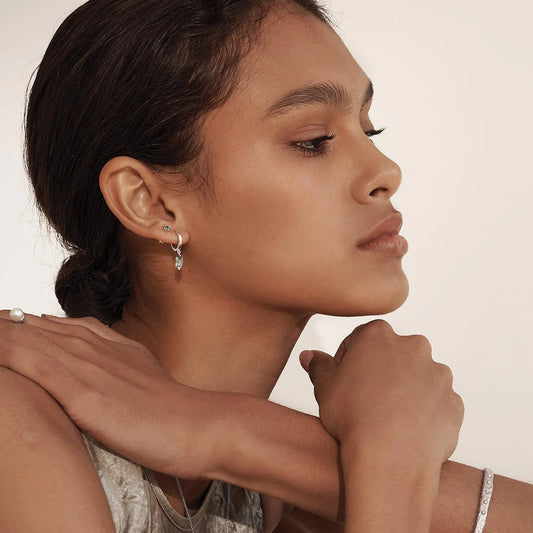 Huggie with Hanging Green Quartz Baguette in Sterling Silver