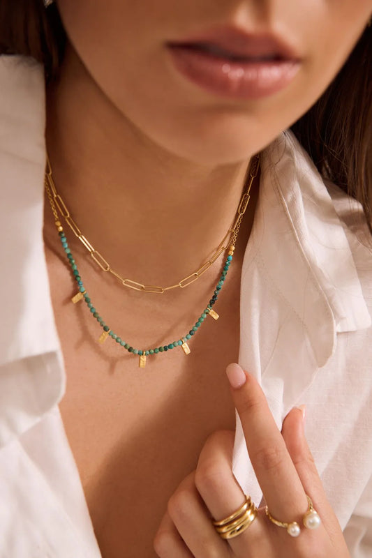 Rose Quartz Choker in 18KT Yellow Gold Plate