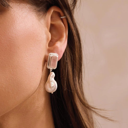 Aphrodite Goddess Medium Pearl Earrings in Sterling Silver