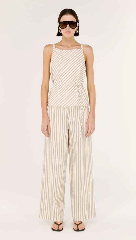 Lola Tie Waist Top - Taupe/White