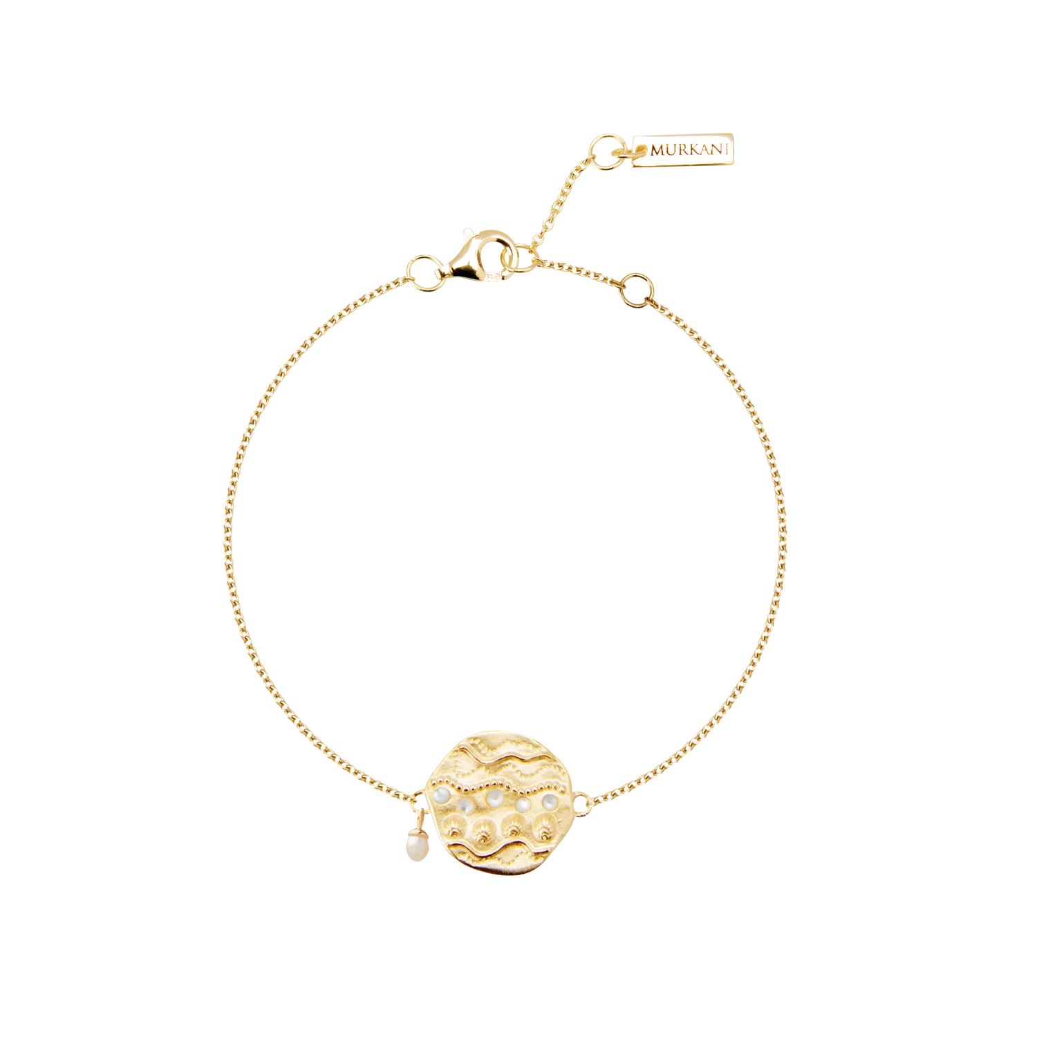 This Bracelet, featuring the iridescent beauty of Mother of Pearl and a delicate pearl charm, reminds us how important it is to live in harmony with the ebbs and flows of life, like the tides of the ocean.