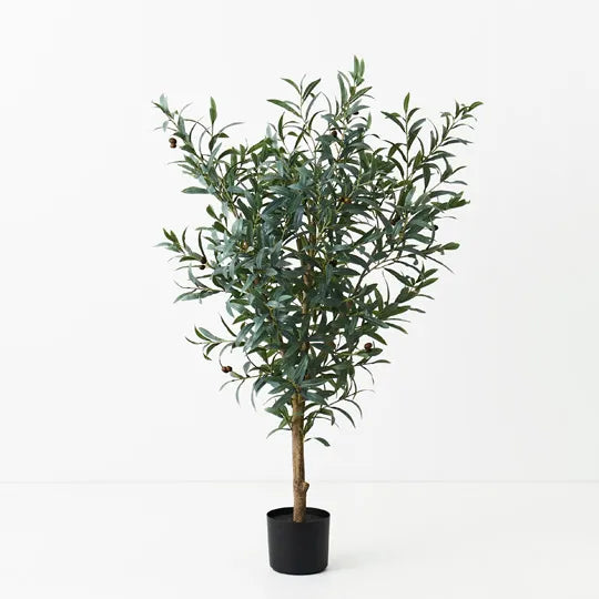 This olive tree in grey comes premade in a plastic pot, ready to be placed in a stylish pot of your choice.